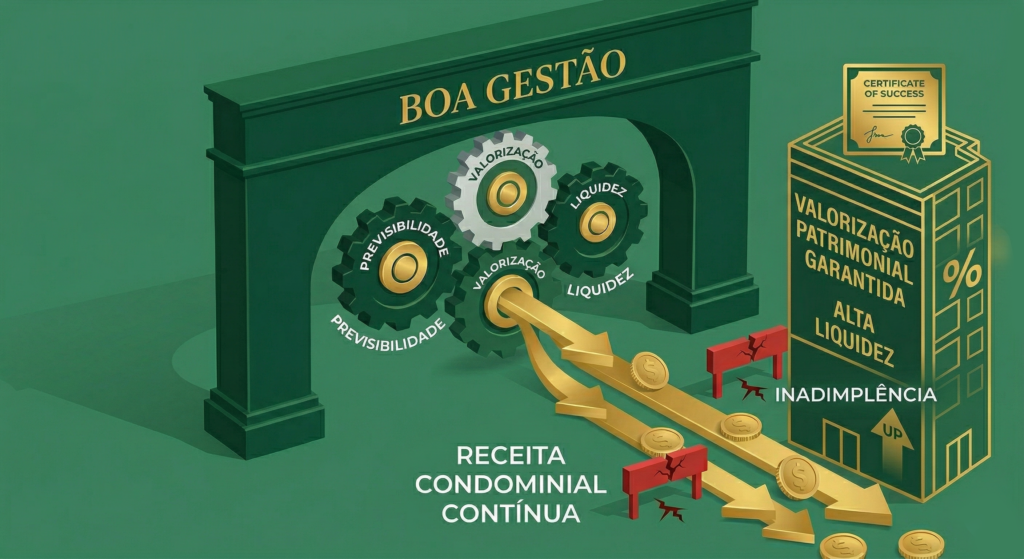 A “boa gestão” não é um conceito estético. Ela é estrutural. A manutenção preventiva, a segurança organizada, as obras de embelezamento e a adoção de tecnologia dependem inteiramente de uma única variável absoluta: o fluxo de caixa previsível.